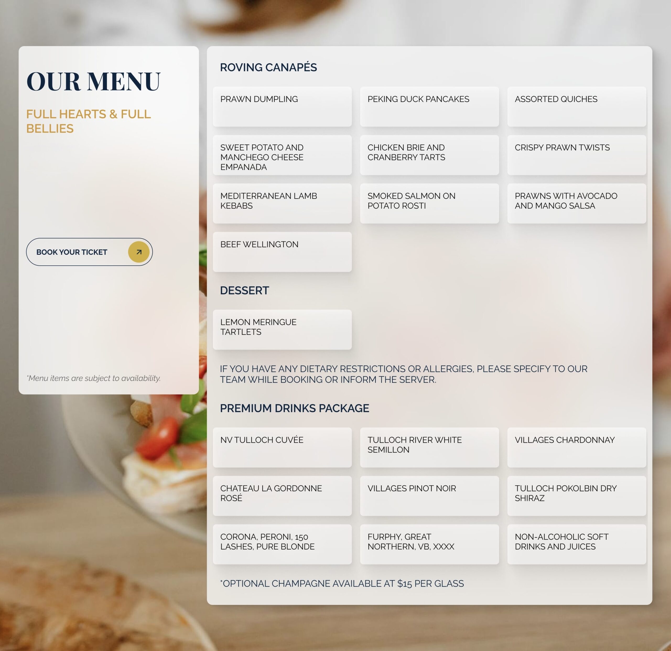 Be treated like VIP’s onboard Eclipse as you enjoy a gourmet canape menu and premium beverages throughout the event!